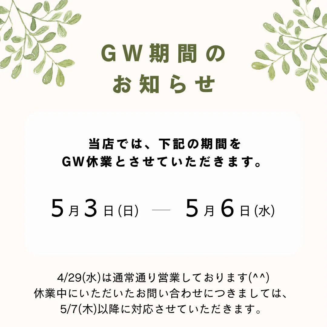 少し早めにGW休みのお知らせです🙇♀️